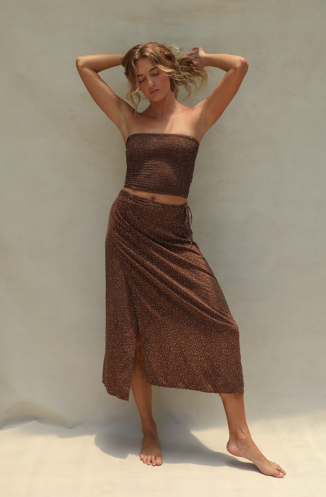 The Holiday Wrap Skirt by Stone Fox Swim is an effortless design made to move with you. Whether your on your way to the beach or exploring a new coastal town this luxurious, lightweight fabric made from 100% Rayon Crepe, is the go-to.