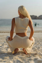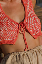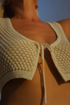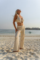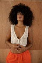 The havena top is hand-loom woven of 100% cotton thread and features a delicate tie front and ribbed base. this little beauty truly looks good with everything, but especially it's counterparts, the havena pant and mini skirt.