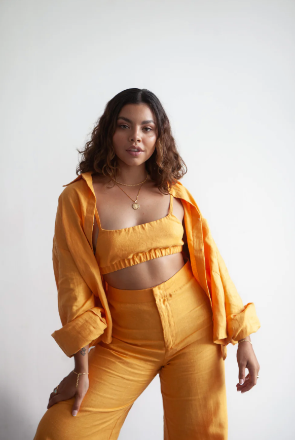 Crafted from hand-dyed 100% OEKO-TEX certified linen & featuring a single top neck-line button and hidden claps for front closure to keep the lines of this piece as clean as can be.