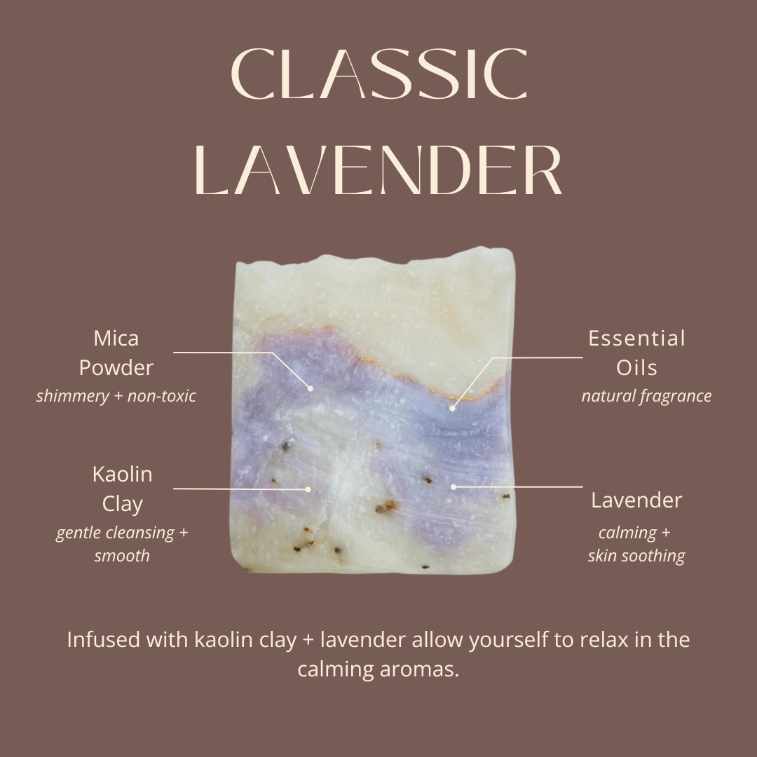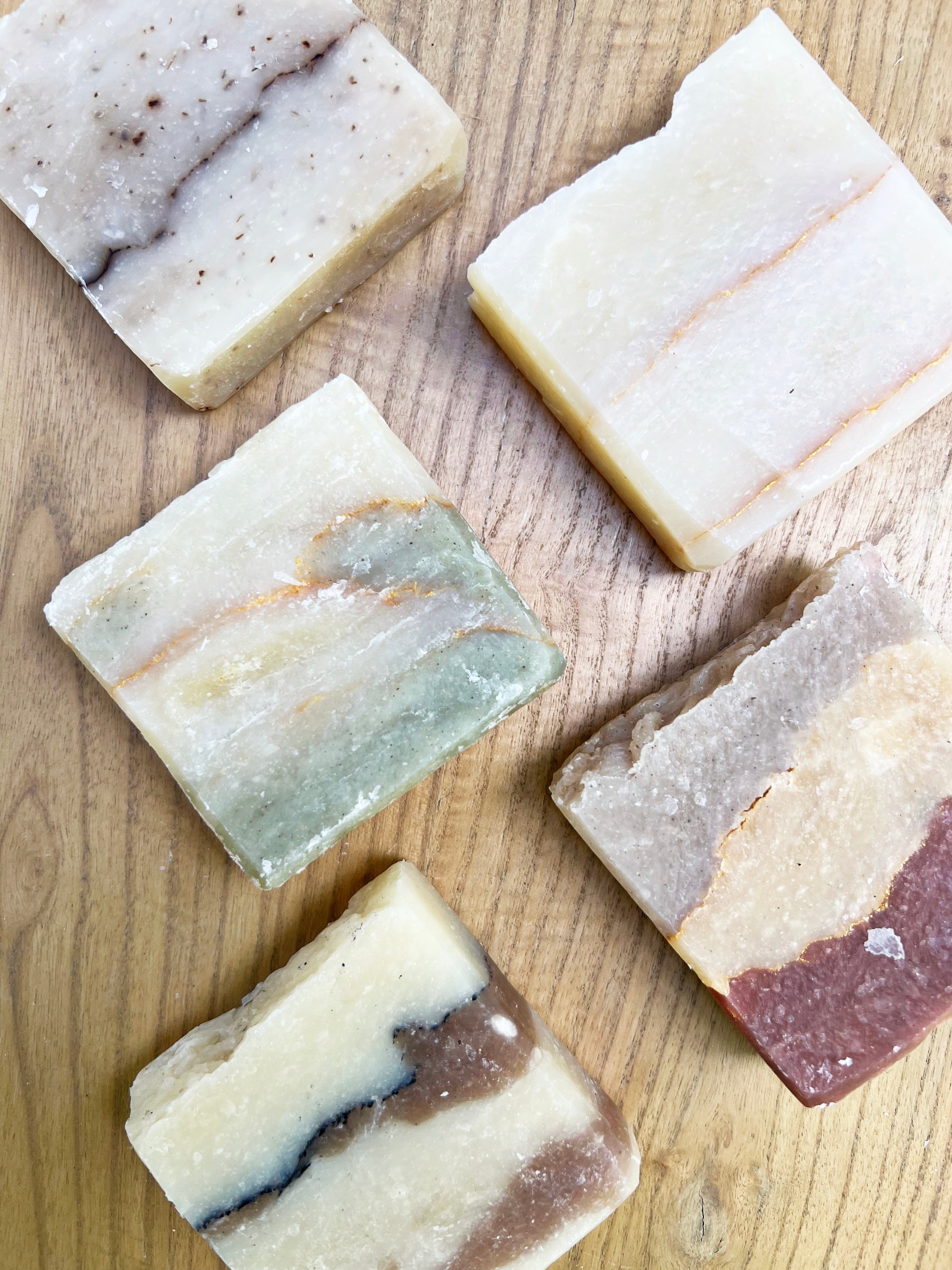 Each soap is uniquely scented and features its own blend of ingredients to enhance your experience. See product photo for specific added ingredients and their benefits.