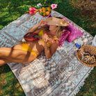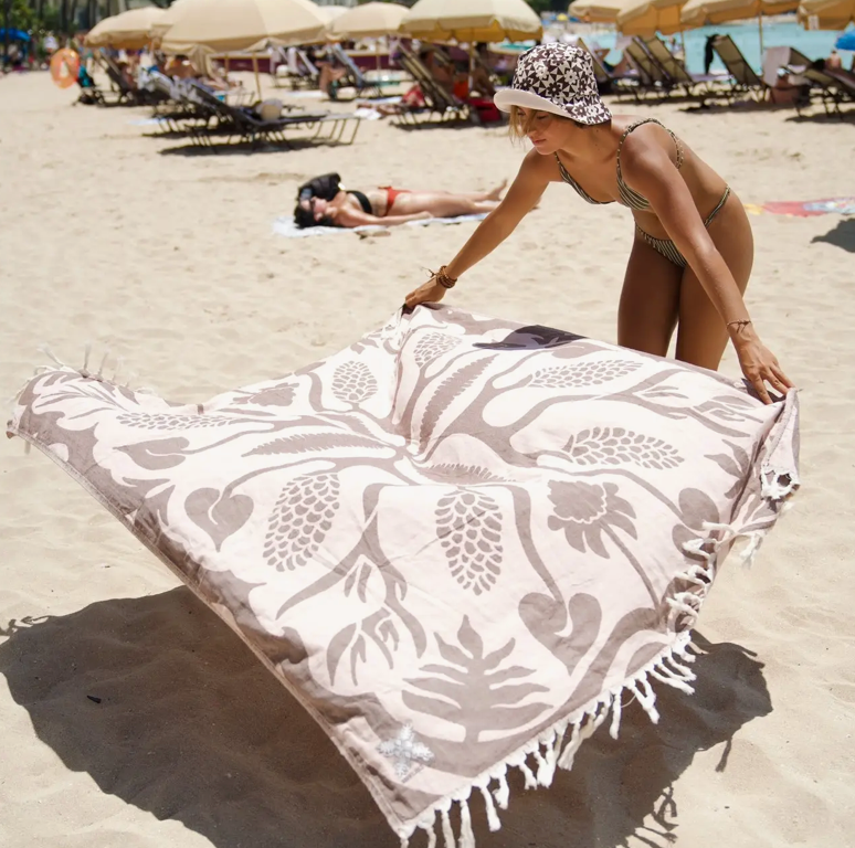 This versatile towel doubles as a towel, blanket, shawl, throw, tapestry, tablecloth, etc.