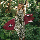 Absorbent & Functional - This ultra-plush towel is thicker than a traditional beach towel: it’s 500 GSM. Featuring a drawcord loop for quick drying and a reactive dye print that prevents fading, it's as practical as it is stylish.