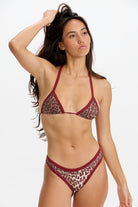 The New Maya Top from BENOA SWIM's Dreamgirls Collection delivers minimalist elegance in sustainable recycled nylon featuring a classic triangle design with piping detail.
