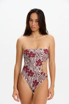 Welcome to the ohana Sunny! This striking one-piece features a sophisticated bandeau neckline paired with an asymmetrical side cutout that adds modern edge to timeless elegance.