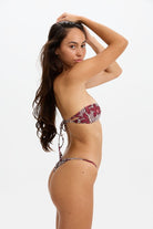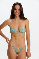 Introducing the India top! The new redesigned strapless top. A combination of Benoaʻs two all time best selling strapless tops, the Kayla and the Indie top. This sexy, self tie, bandeau style top features two cutouts in the the front. The back has a strappy self tie with our signature Benoa leaf details.