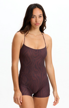 Meet your new go-to — the Benoa Body Chocolate Zebra Cross Back Romper. 🐆🤎 Featuring a slightly scooped neckline, fixed cross-back straps, and a low scoop back for a flattering fit. Designed with a double-lined top for support, seamless anti-camel toe bottom, right side pocket, and elastic cinching at the waist. The 3” inseam and single-layered bottom keep it comfy and functional, while the Benoa branding on the back adds that signature touch. Perfect for beach days, workouts, or casual island adventures.