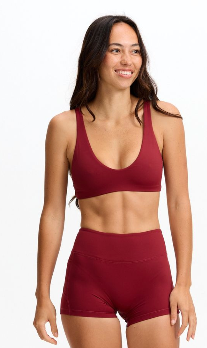 The beloved Sophia Top is back — now in our Active Line! 💪🌺 This deep V-neck bra offers off-the-neck support, a flattering cut-out back, and a tucked, seamless elastic waistband for all-day comfort. Designed in Hawai‘i and made from 77% recycled nylon and 23% spandex, it’s sustainably and ethically produced with recycled materials. Each colorway is finished with crisp white piping around the neckline for a sleek, sporty look. True to size and perfect for workouts, surf, or lounging