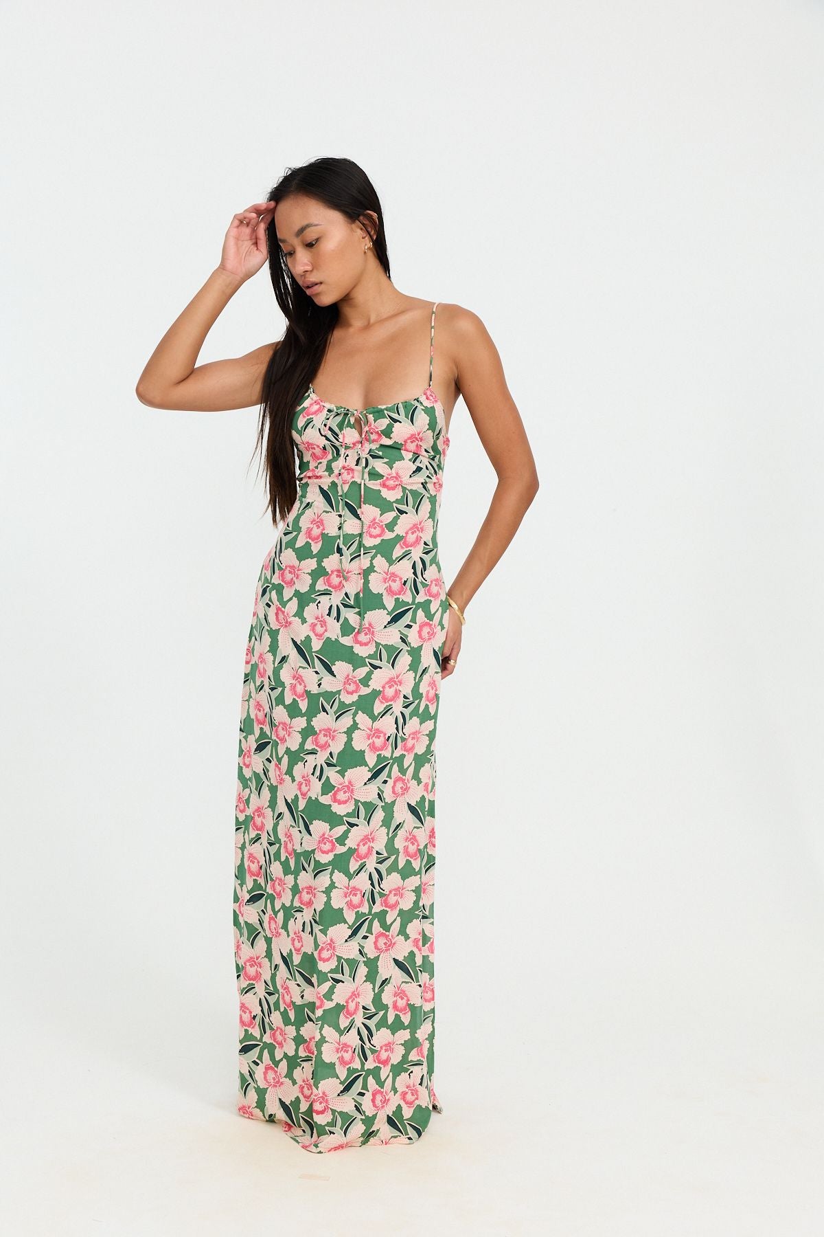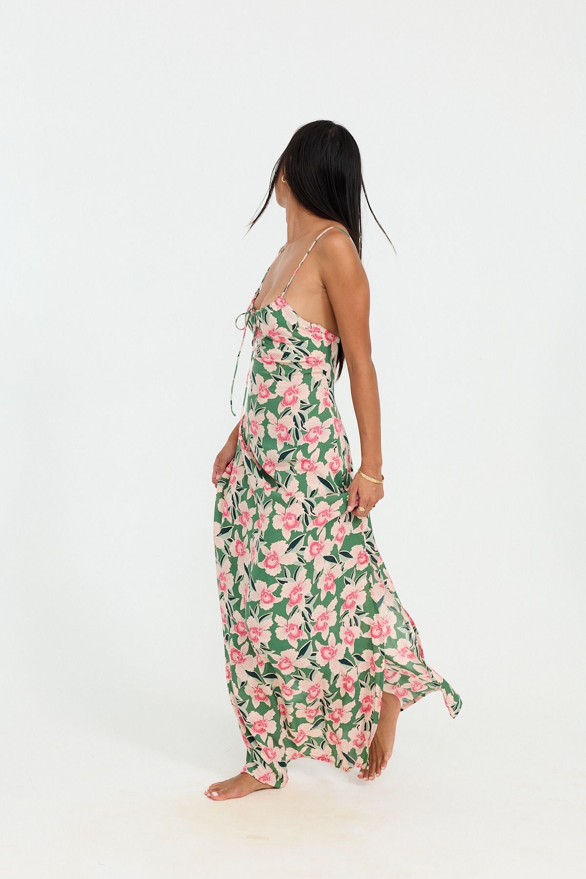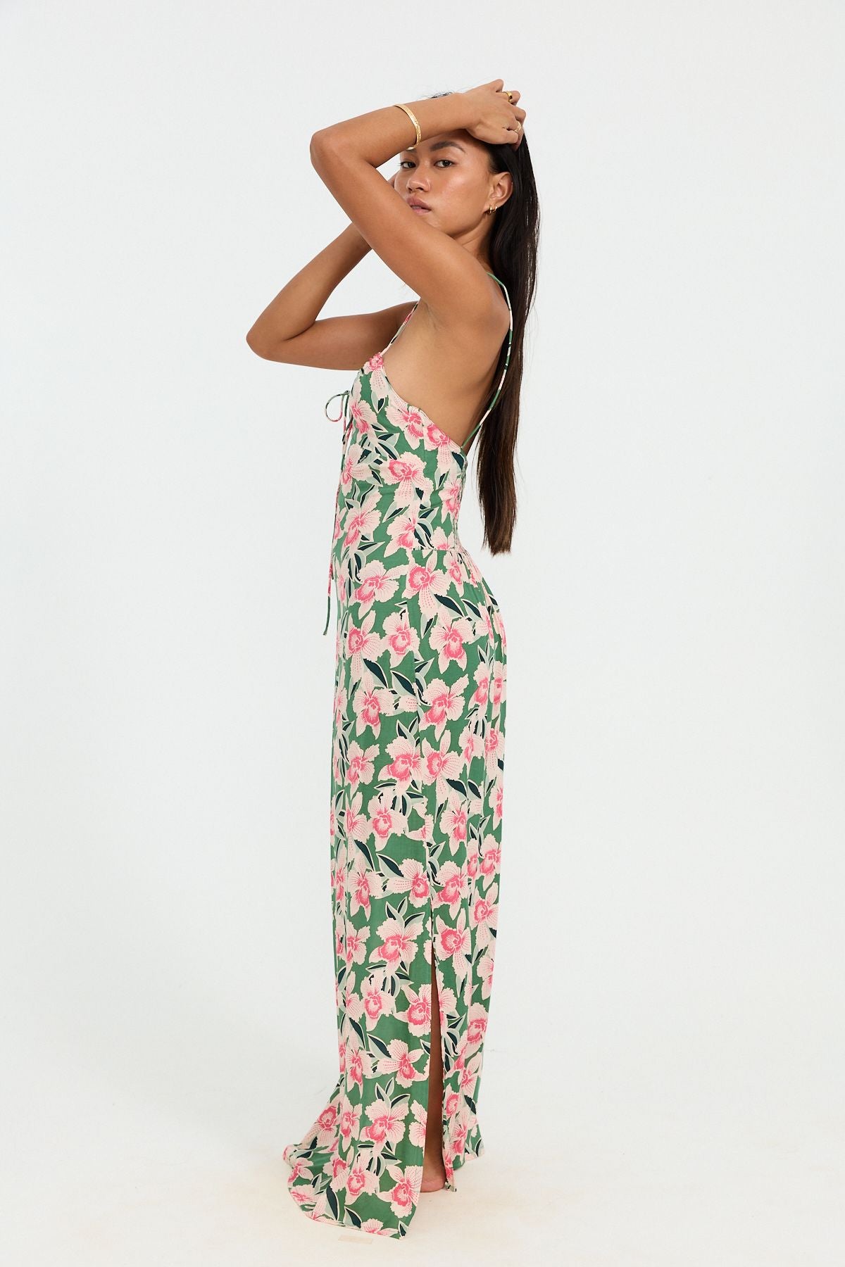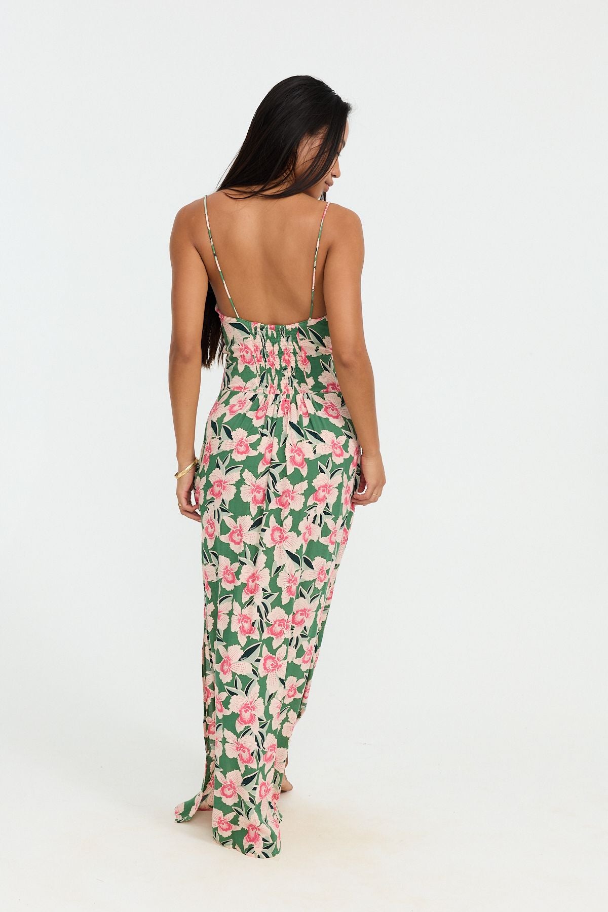 The Jaden dress as a maxi, with a slit just above the knee to add flow. A Scrunched back keeps it fitting just right, with an adjustable tie through strap, that can be tied multiple ways.