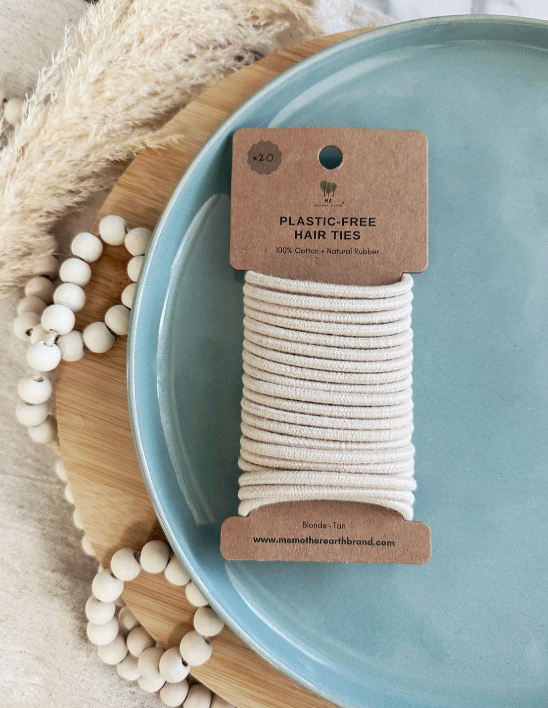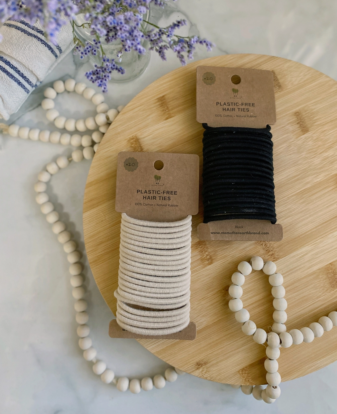 Materials: Made from 100% cotton and natural rubber, our plastic-free hair ties are biodegradable.