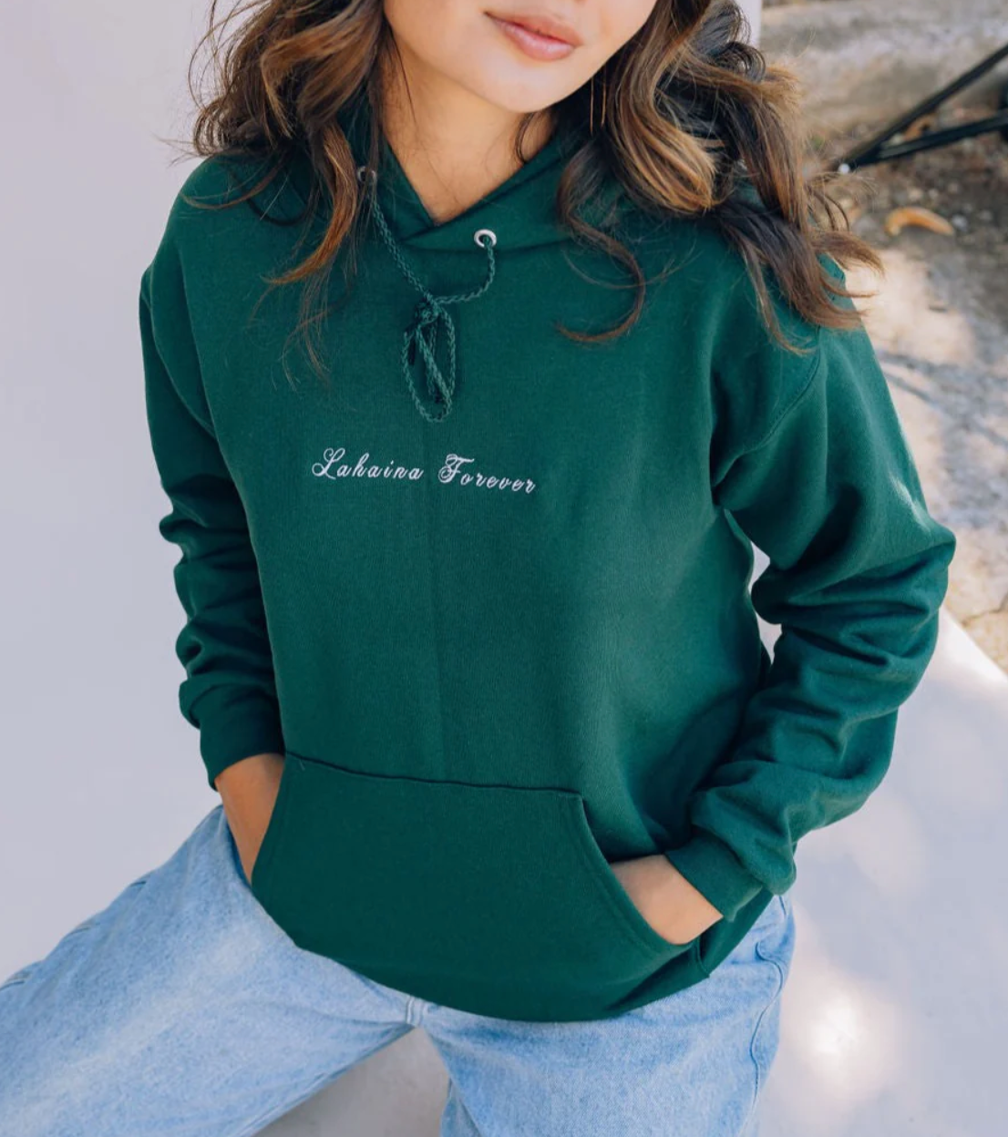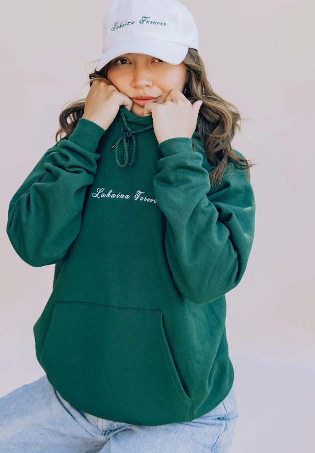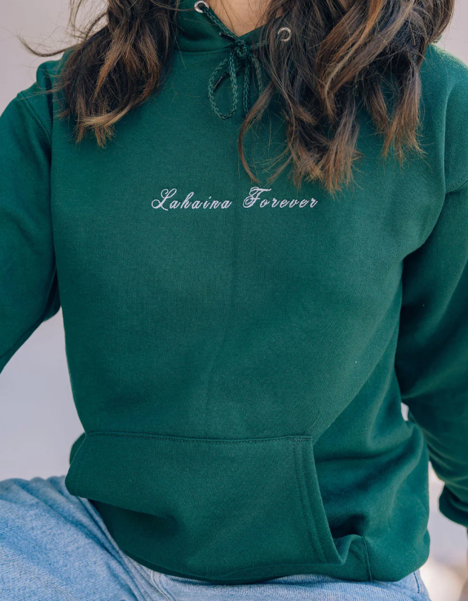 Stay cozy and make a statement with the Lahaina Forever Hoodie, designed in a rich emerald green color that captures the beauty of Hawai‘i. This eco-friendly unisex hoodie features a unique script embroidery, making it both meaningful and stylish.
