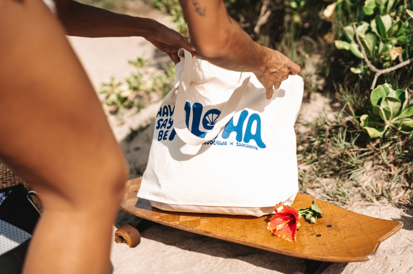 A Natural Cotton Canvas Tote as versatile as your day-to-day adventures. The SARCREATE x HO'OLAWA tote bag is the perfect blend of function and style, crafted with durable 6oz organic cotton fabric to hold all your essentials. Eco-Friendly tote bags are biodegradable, reusable, biodegradable, and recyclable.