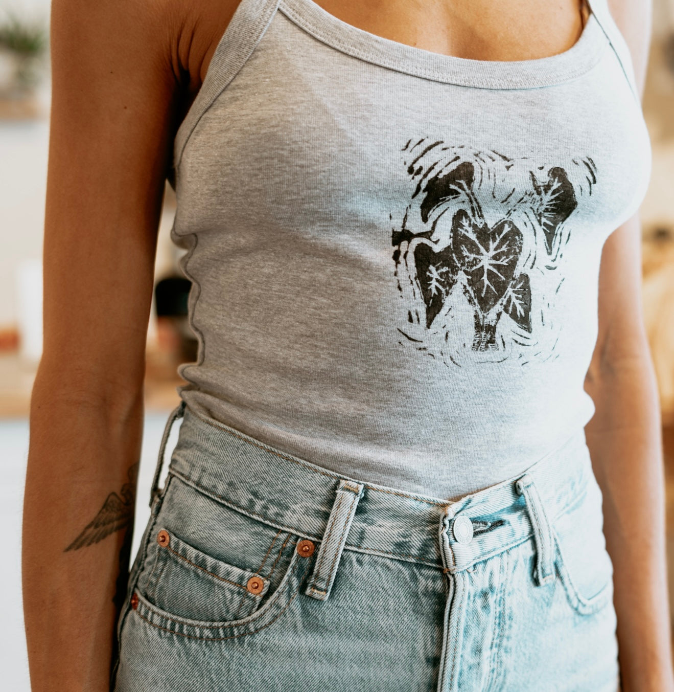 Hand-carved and stamped with original designs on Maui by local artist Zoe Gonzales. Each cotton tank is a wearable piece of art, made with aloha.