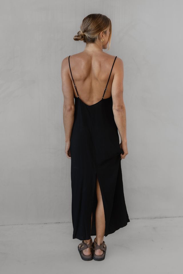 Elevate your Resort Wear with this stunning Dusk Long Slip Dress, designed for effortless sophistication. Crafted from buttery soft, lightweight fabric, it drapes with a fluid elegance that gently follows the body’s natural lines without clinging. The minimalist front and soft V-neckline, keeps the look clean and refined. The back features a beautiful, eye catching split that adds movement, allure, and class.