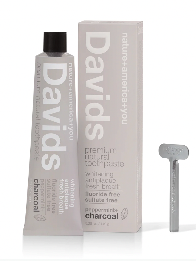 calcium carbonate (limestone abrasive), purified water, sodium bicarbonate (baking soda), vegetable glycerin, hydrated silica, xylitol (birch derived), cocos nucifera (coconut) oil, activated charcoal, carrageenan (seaweed extract), sodium cocoyl glutamate, mentha piperita (peppermint) oil, mentha viridis (spearmint) leaf oil, pimpinella anisum (anise) seed extract, gaultheria procumbens (wintergreen) leaf oil, stevia (leaf extract).