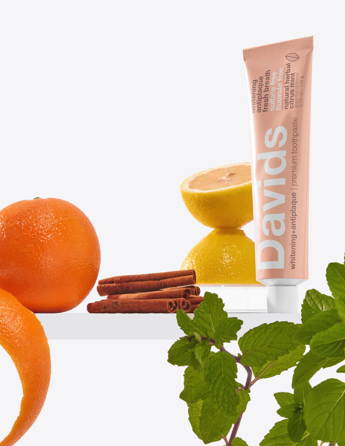 calcium carbonate (limestone abrasive), vegetable glycerin, purified water, sodium bicarbonate (baking soda), xylitol (birch derived), hydrated silica, sodium cocoyl glutamate, carrageenan (seaweed derived), mentha piperita (peppermint) oil, menthol, elettaria cardamomum seed oil, illicium verum (anise) fruit oil, eucalyptus globulus leaf oil, citrus aurantium amara (orange) peel oil, eugenia caryophyllus (clove) flower oil, citrus limon (lemon) fruit oil, cinnamomum zeylanicum bark oil, capsicum frutescens (cayenne), stevia (leaf extract).