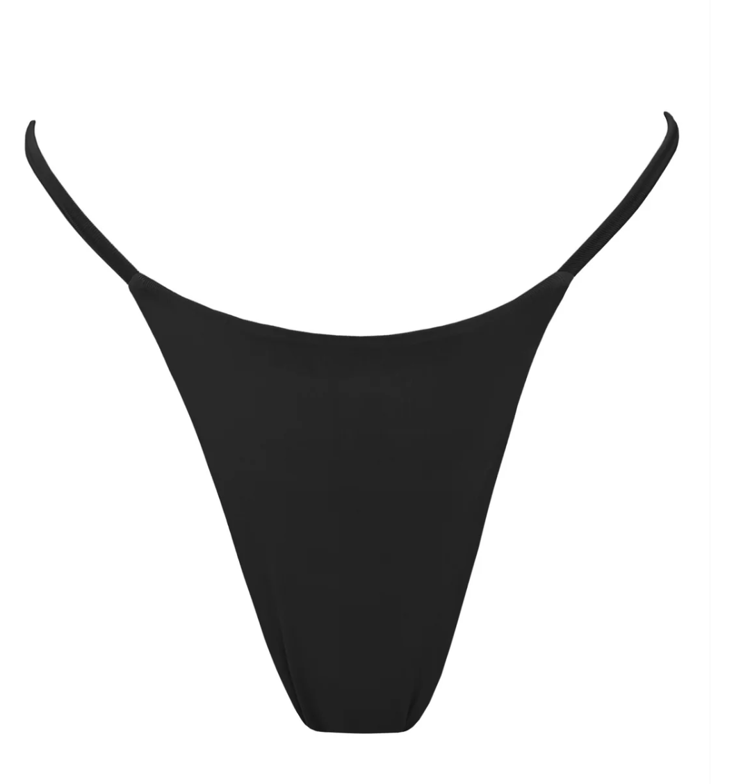 An everyday basic black bikini, made with minimal coverage and high hip action to flatter!