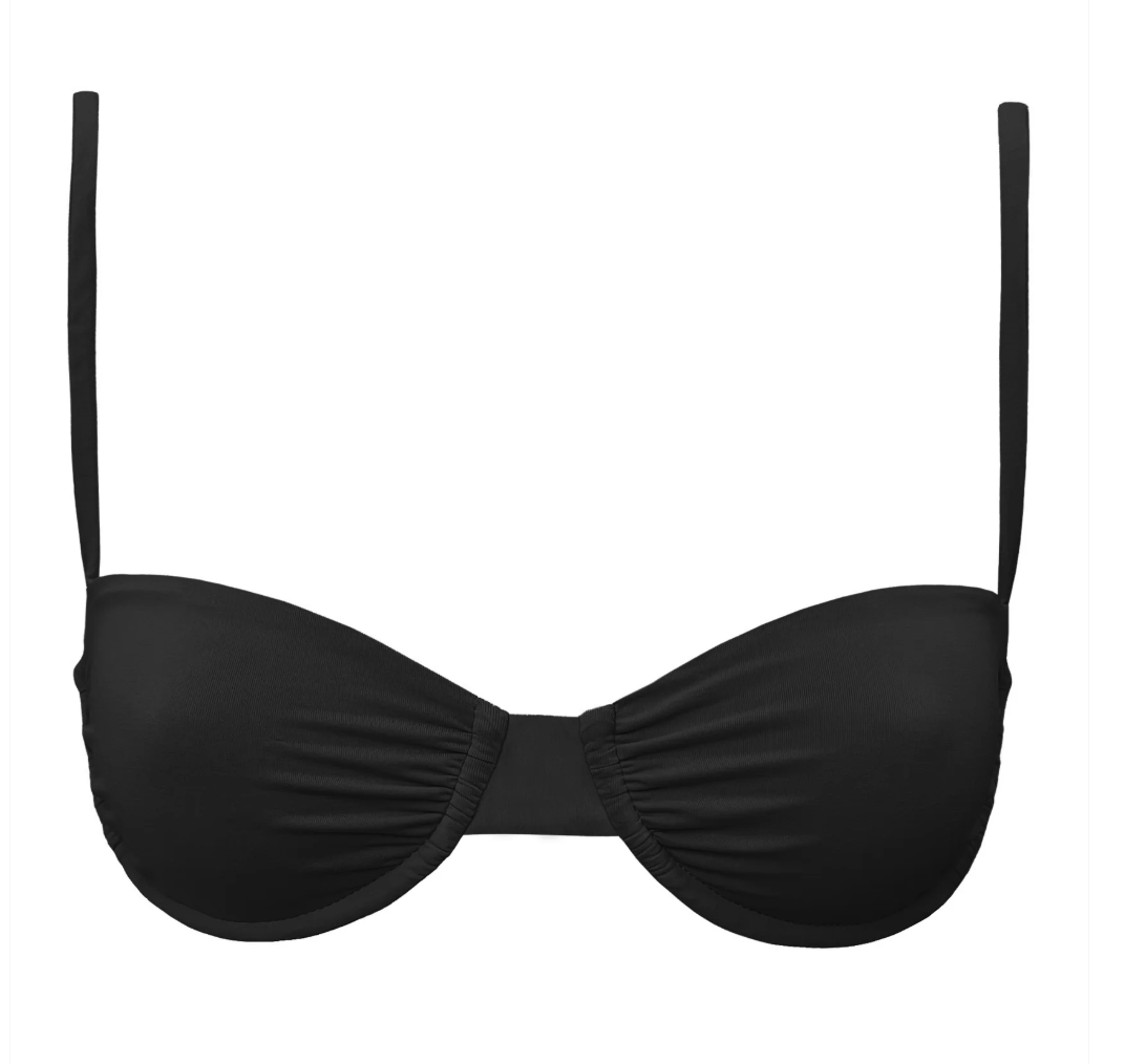 The fox top is made from serioulsy soft material, like butter on your skin! Flattering and supportive with underwire cups, this basic black is a vacation must. Finished with adjustable shoulder straps and gold hardware.