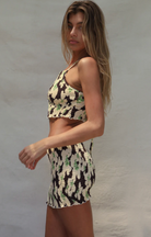 The Celine Smocked Top by Stone Fox Swim is mindfully made with 100% Fujette Crepe giving a fitted feel with an element of stretch. It features a classic square neck line with adjustable cross ties at the back to find your desired fit. Offering a ruffled hem line to give a touch of feminine to your sun wardrobe. Wear it as a set or with your go-to bottoms.