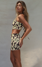 Featuring a ruffled hem line to give a touch of feminine to your sunlit days. Combine with the matching top for a perfect resort ready look or your favorite bikini top on the way to the beach.
