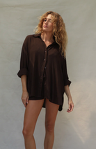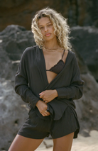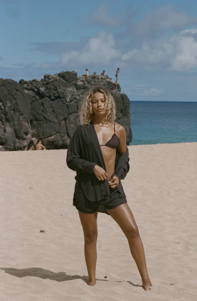 The Layla Shirt by Stone Fox Swim is designed for ease all season long. This piece offers a breezy fit featuring a classic drop shoulder long sleeve with an open collar neckline ready to carry you from am to pm. Made sustainably from our custom fujette crepe material, your skin will thank you for this one