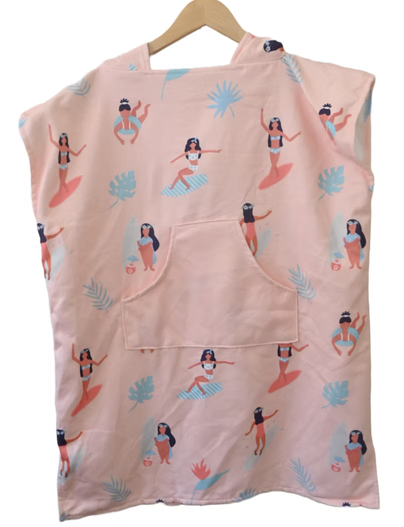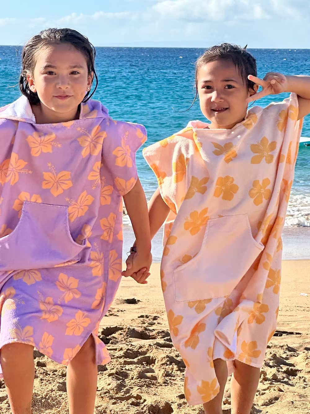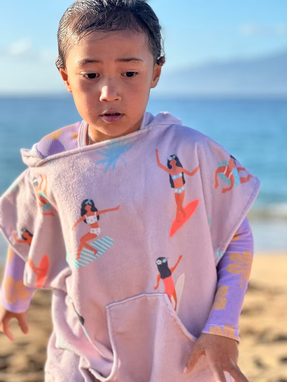 Made for beach days, pool hangs, and post-bath snuggles. This 100% microfiber hooded poncho towel from Aloha Co. Maui is lightweight, quick-drying, and perfect for keiki ages 2 to 5. Designed with an easy slip-on fit, cozy hood, and a handy front pocket for tiny treasures, it’s a wearable towel they’ll actually want to keep on.