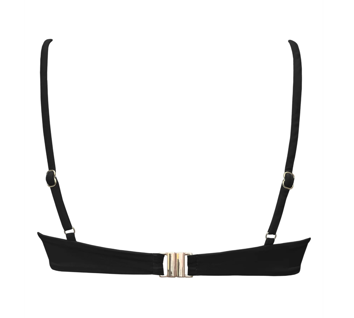 The fox top is made from serioulsy soft material, like butter on your skin! Flattering and supportive with underwire cups, this basic black is a vacation must. Finished with adjustable shoulder straps and gold hardware.