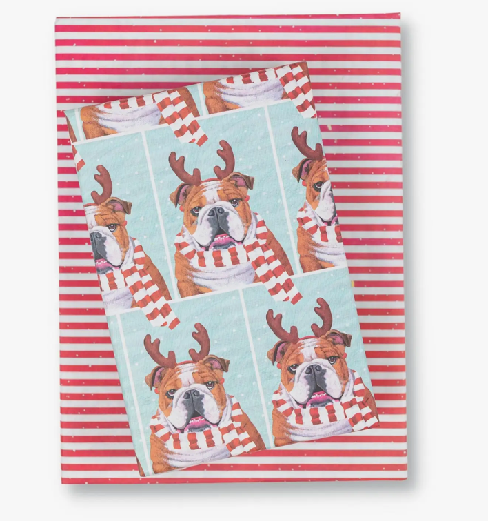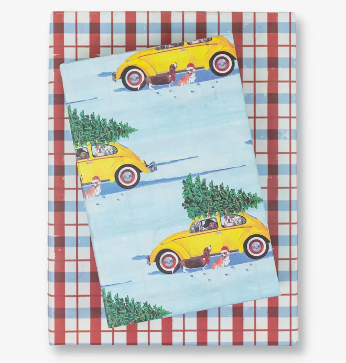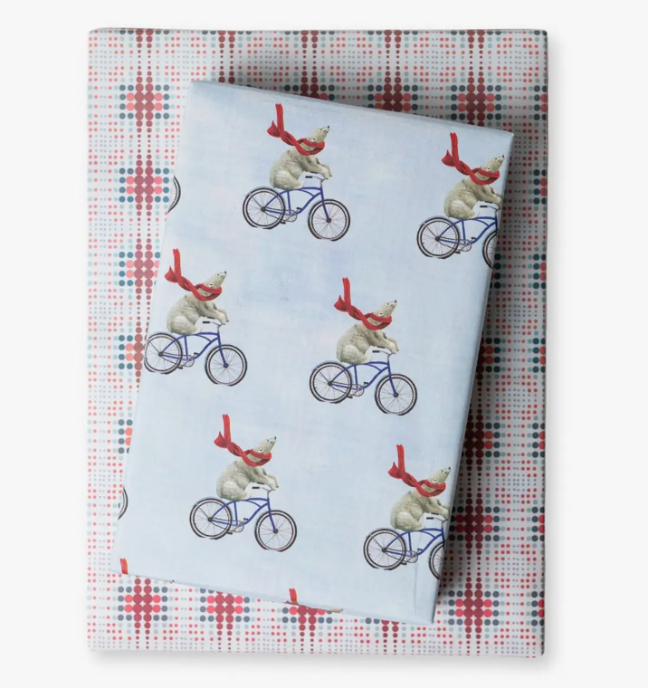 Package includes 3 sheets + adhesive gift tags • Sheet size 21.5" x 34" • Premium newsprint + soy-based inks • Plastic-free PLA packaging • Flat, folded sheet for easy storage and shipping (works great for e-commerce) • No unnecessary cardboard roll • 100% recyclable and compostable • Milled, printed and packaged in Washington State