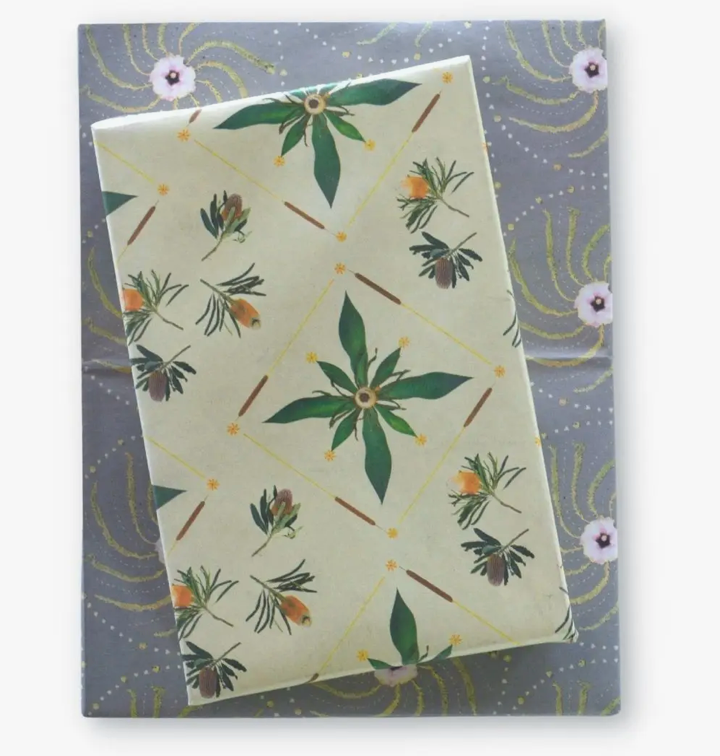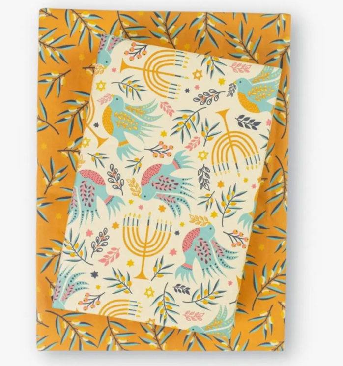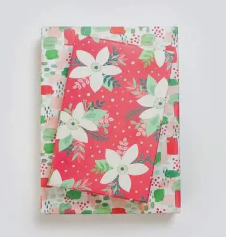 Celebrate sustainably with Wrappily recycled and recyclable wrapping paper. paired with a coordinating textile pattern on the reverse side. Double-sided paper works great for crafting, too.